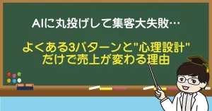 この記事では、AIに丸投げして失敗する3つのパターンと、心理設計だけで売上が変わる理由を徹底解説します。読み終わる頃には、明日からの集客が変わるはずです。